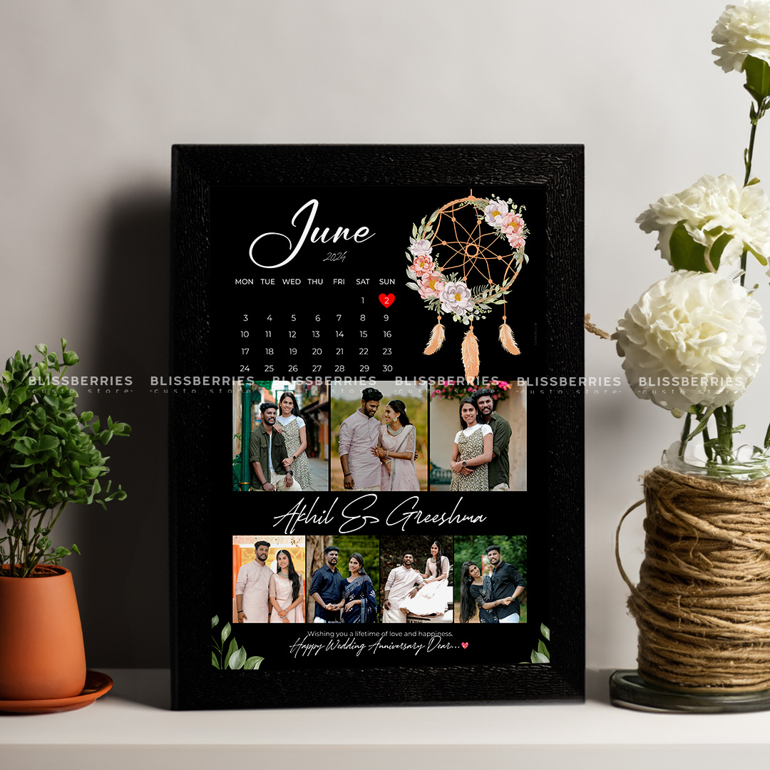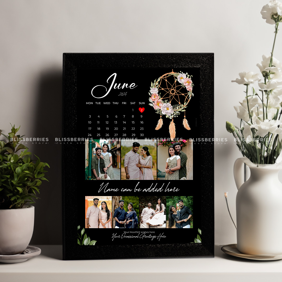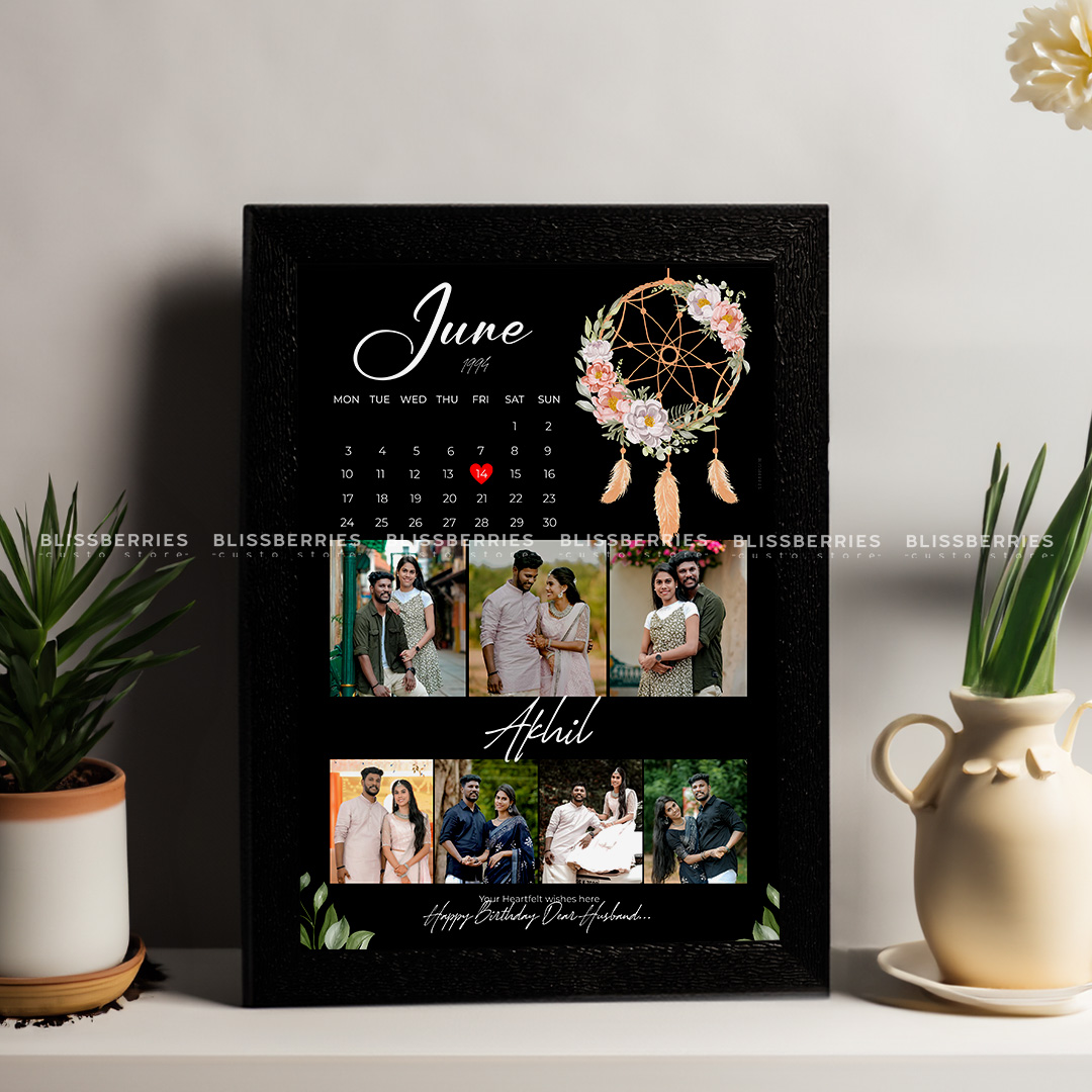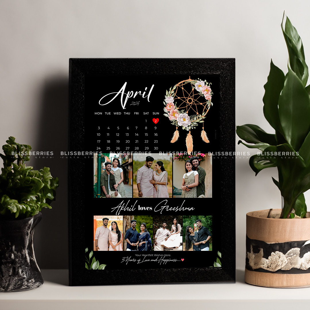Black Custom Calendar Photo Frame - 7-Photo Display with Special Date Highlight, Name & Personalized Wish