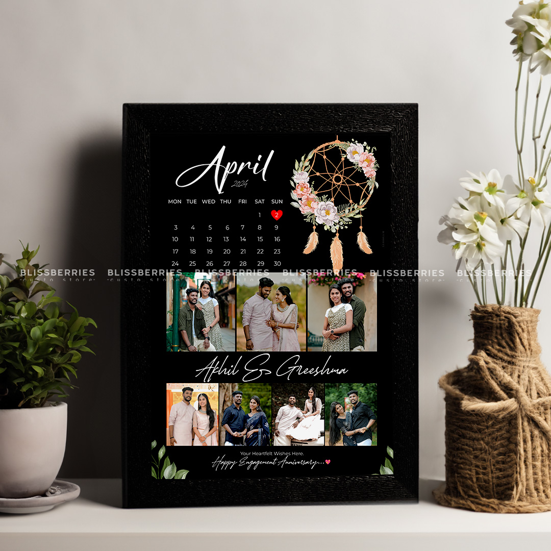 Black Custom Calendar Photo Frame – 7-Photo Display with Special Date Highlight, Name & Personalized Wish