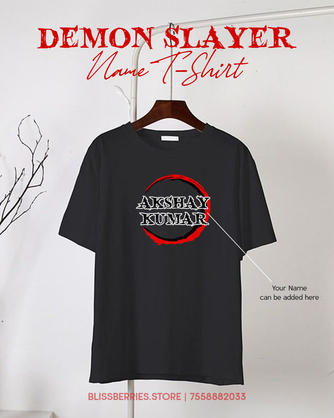 You're viewing: Demon Slayer Custom Name T-Shirt Original price was: ₹750.00.Current price is: ₹549.00.