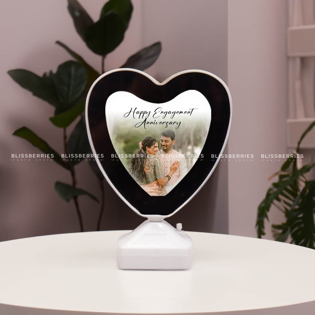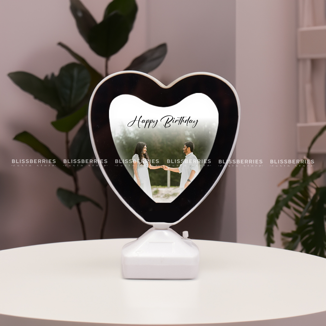 Illuminate your memories with the Heart Magic Mirror from Blissberries Custo Store, a beautifully crafted heart-shaped mirror that magically reveals your favorite photo with a simple switch of the LED light, creating a unique and romantic keepsake.