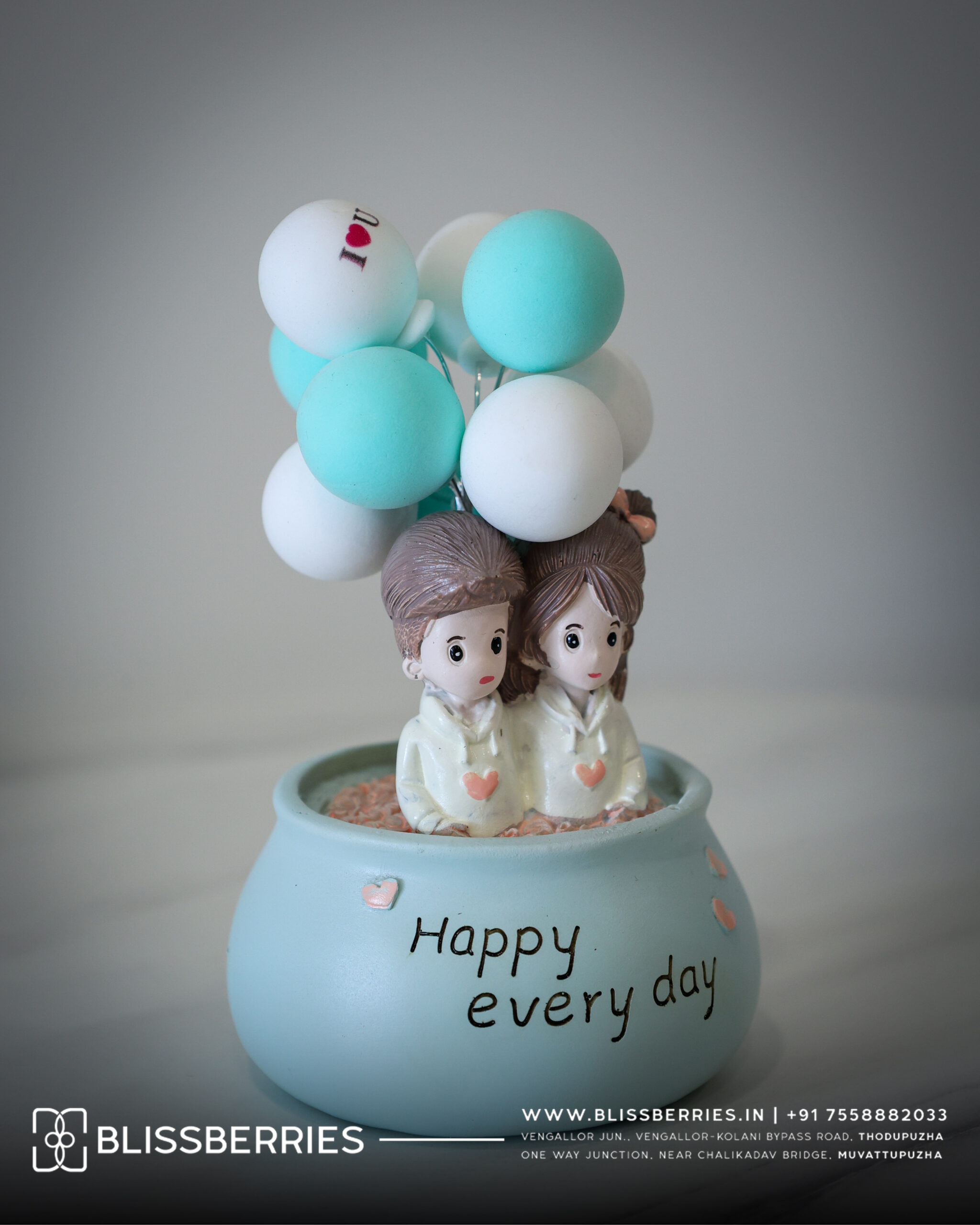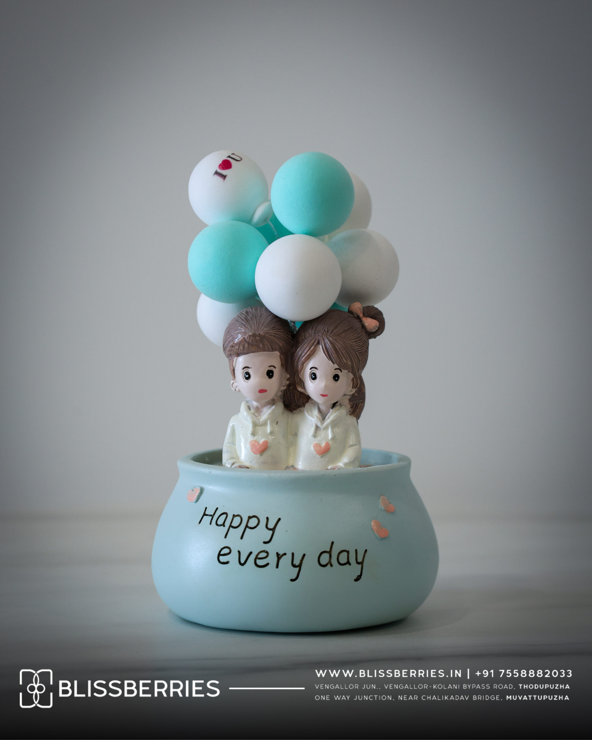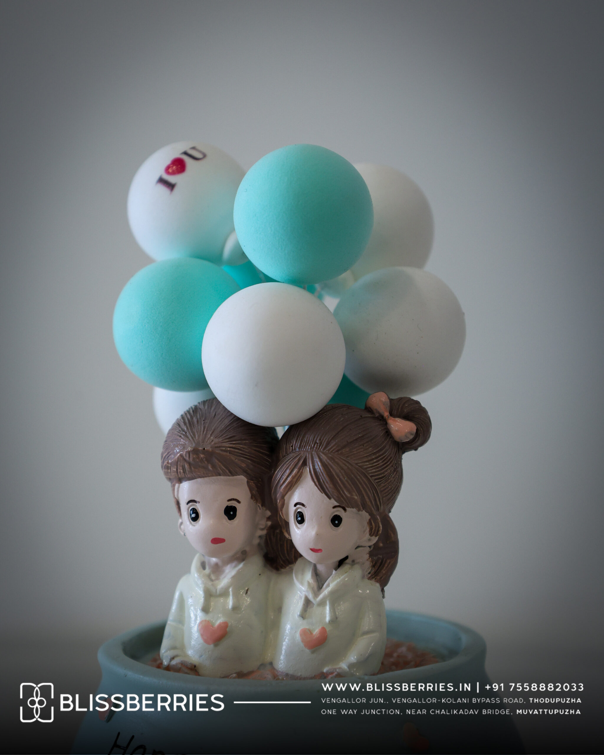 You're viewing: Miniature Blue Couple with Balloons Ceramic Showpiece | Romantic Home Décor Gift in Pot 670.00