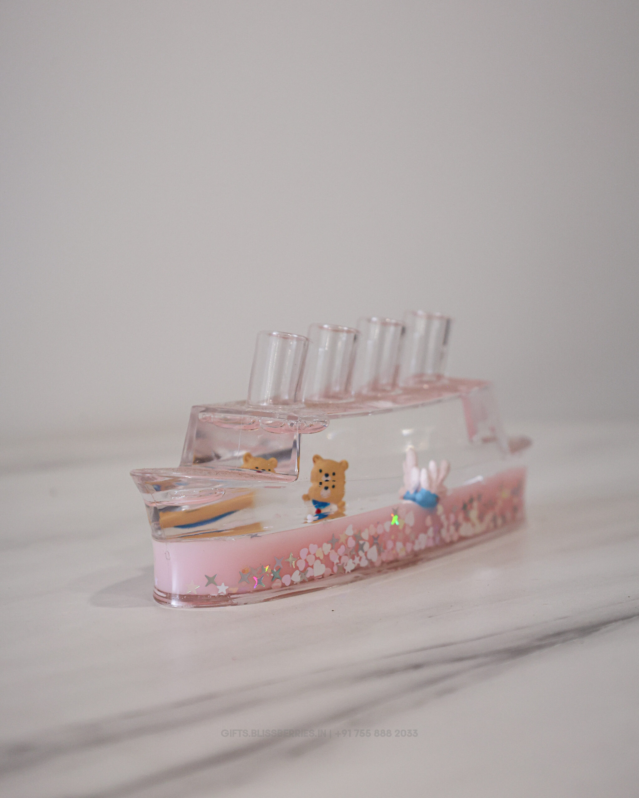 Pink Gel Boat Pen Holder | Decorative Desk Organizer with Floating Boat Design for Office & Study