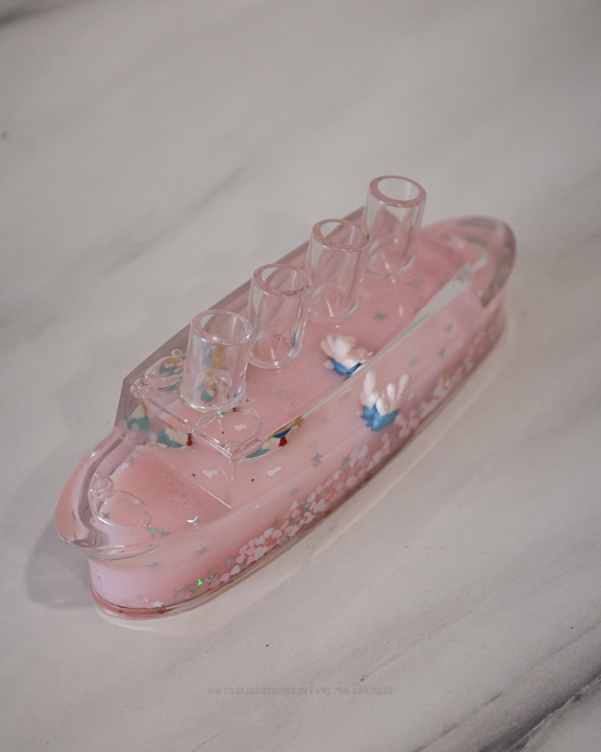 • Creative Boat Design: Features a floating miniature boat inside pink gel