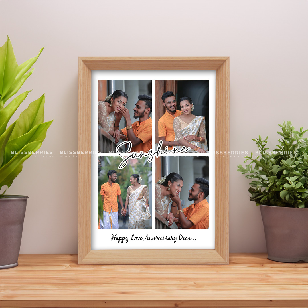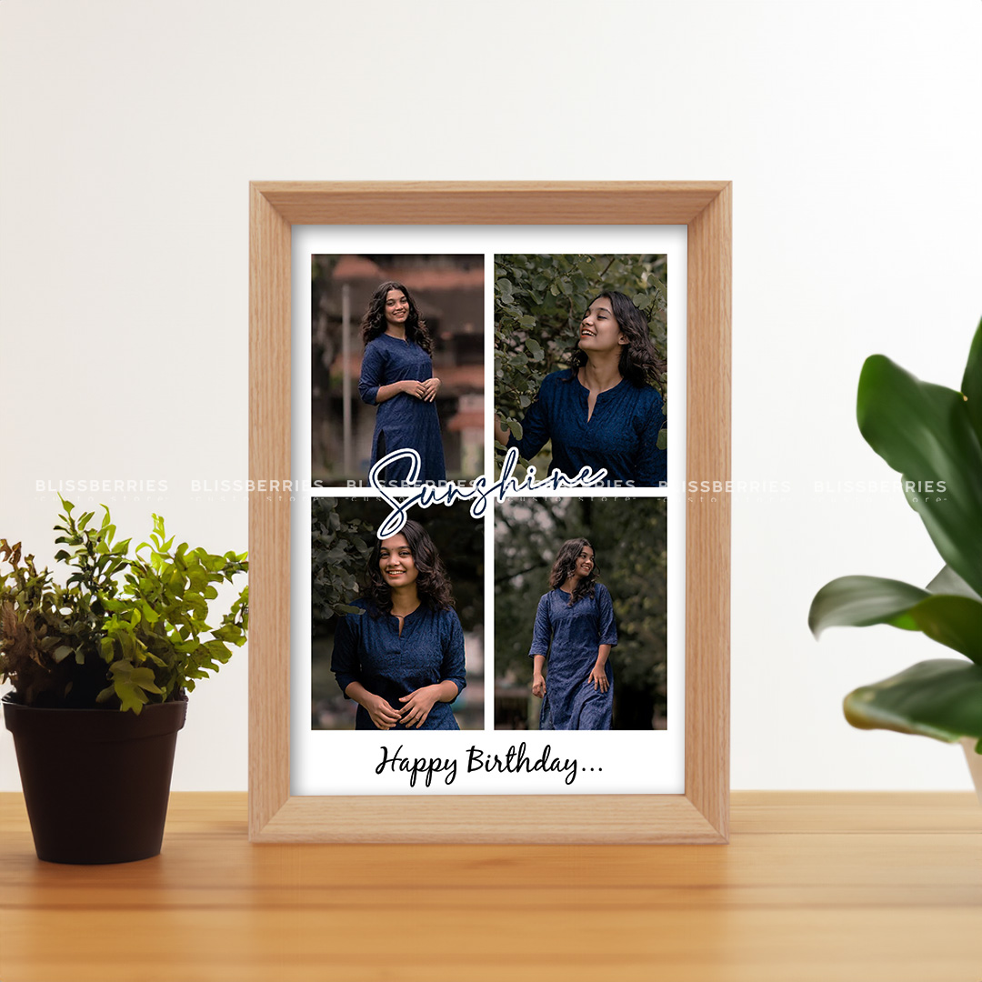 Wooden A4 Frame – Customizable with 4 Photos, Center Text & Greeting